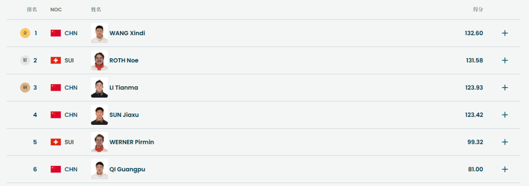 而最后一位出场的罗特延续了首轮比赛中的出色的状态,得到131.58分。最终,王心迪凭借1.02分的微弱优势夺得金牌,罗特摘得银牌,另一位中国选手李天马获得铜牌。